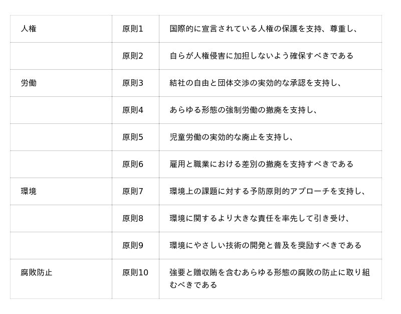 国連と民間(企業・団体)が手を結び、健全なグローバル社会を築くための世界最大のサステナビリティ イニシアチブです。各企業・団体が責任ある創造的なリーダーシップを発揮することによって、社会の良き一員として行動し、持続可能な成長を実現するための自発的な取り組みです。