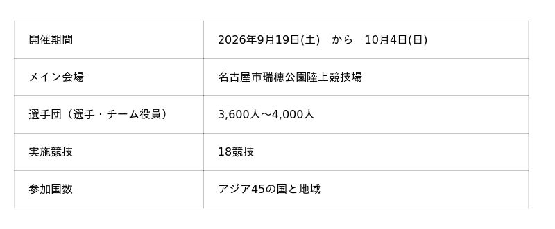 ・第20回アジア競技大会(2026/愛知・名古屋)