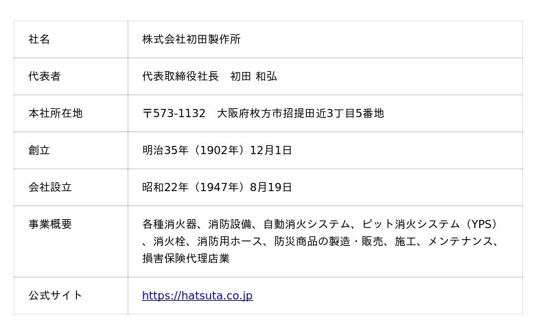 一方、初田製作所は120年以上にわたり、消火器・消火設備の分野で長年の実績を誇る企業であり、その信頼性の高い製品と技術力を背景に、今回のシステム販売元として参画いたします。