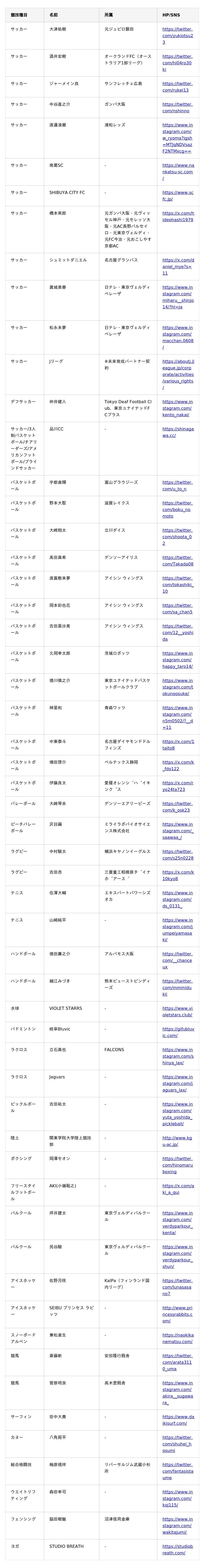 <BASE UP SPORTS サプライヤー契約一覧(現時点)>
