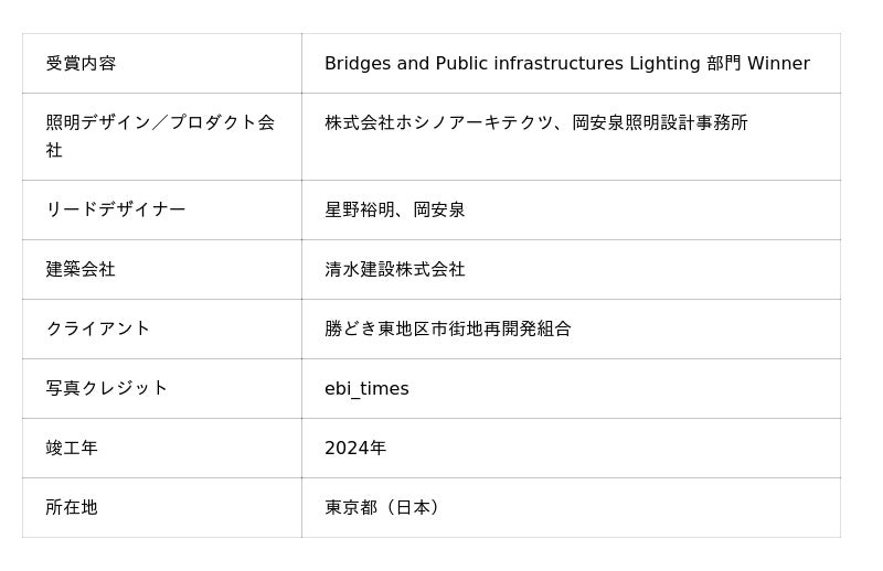 株式会社ホシノアーキテクツ(本社:東京都港区、代表取締役 星野裕明)は、国際的な照明デザインアワード「LIT Lighting Design Awards 2025」において、マスターデザインアーキテクトとして参画した人道橋「黎明小橋」が“Bridges and Public infrastructures Lighting” 部門のWinnerを受賞したことをお知らせいたします。