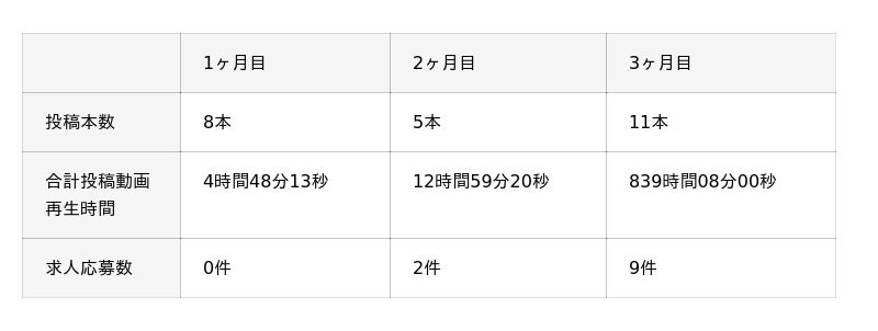 運用開始から3ヶ月目で、投稿動画の総再生時間が前月比で約64.6倍に伸びました。