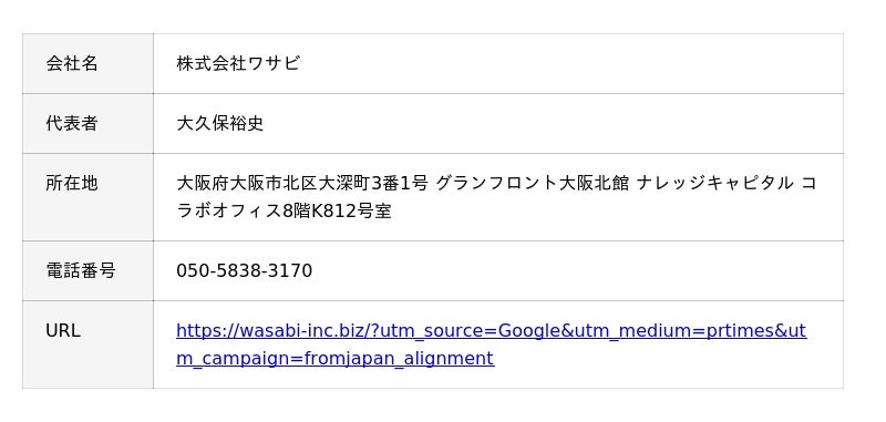 株式会社ワサビ(本社:大阪府大阪市、代表取締役:大久保裕史、以下「ワサビ」)が提供する