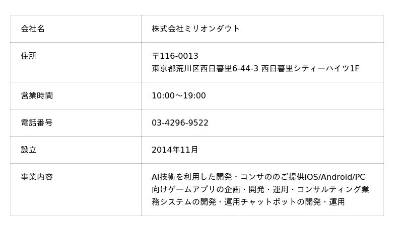株式会社ミリオンダウト