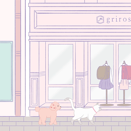 ペルルとボンボンについてしっかり者で、ちょっぴり気取り屋さんの猫のペルルと、優しくてのんびり屋さんの犬のボンボン。可愛いものやおしゃれが大好きなgriroseの仲間です。