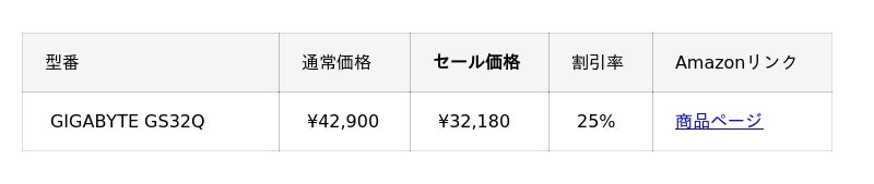 【Amazon ブラックフライデー】GIGABYTEの液晶ゲーミ