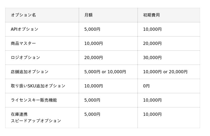 各種オプションの追加、システムで管理する店舗数の追加、上位プランへの変更時に発生する