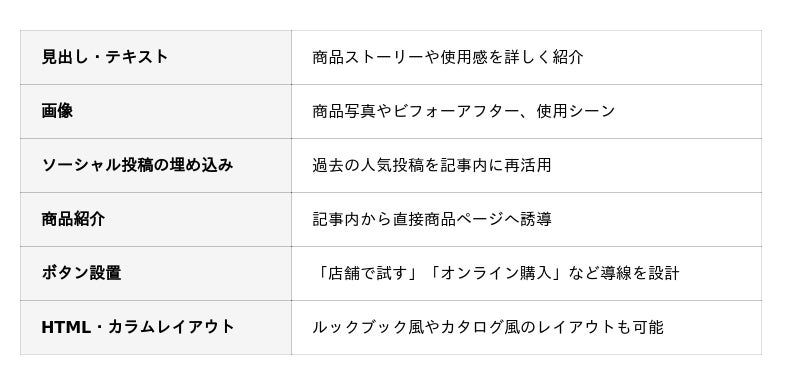 投稿と詳細なブログ記事を使い分けることで、多様な顧客接点を創出し、ブランドへの理解を深めます。