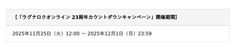 【ラグナロクオンライン】「ラグナロクオンライン23周年 カウントダウンキャンペーン」実施!