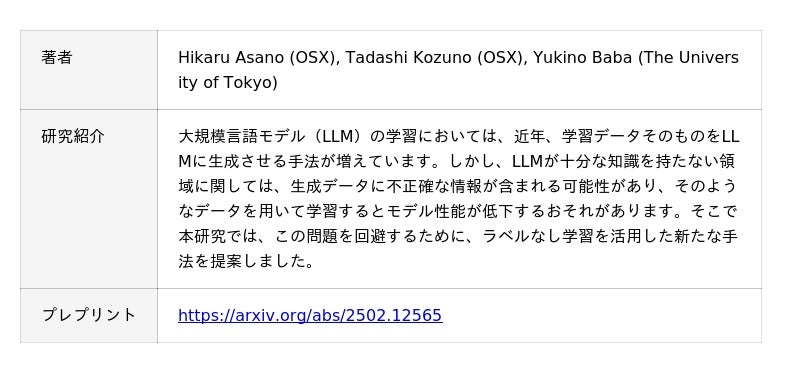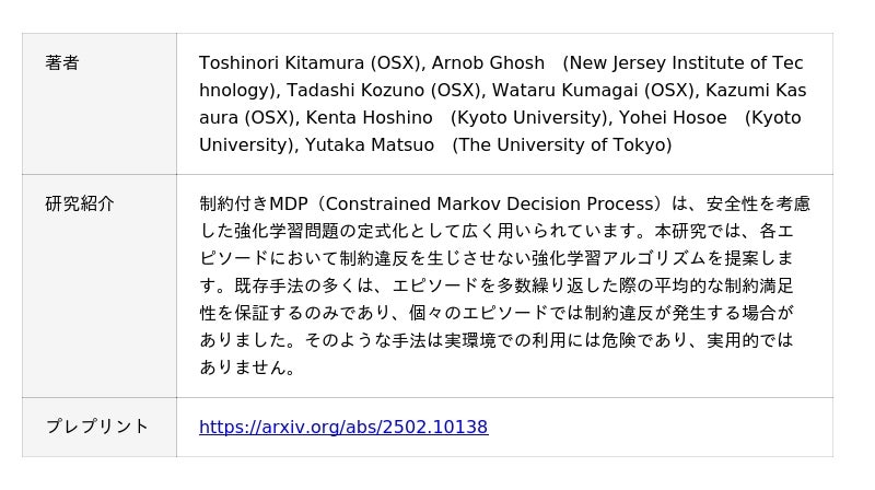 OSXより発表する研究論文は、以下の2件です。なお、1件目の論文は、採択された論文の中でも特に注目度が高く優れた研究に与えられるSpotlightとして採択されています。
