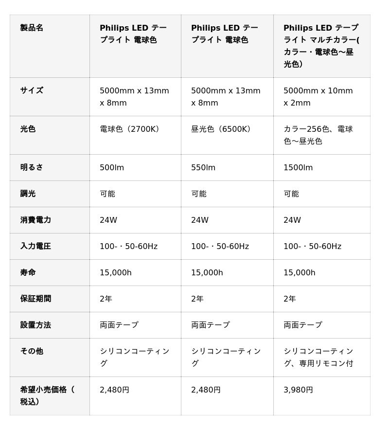 Philips LEDシリーズ初となる「Philips LED テープライト」、電球色/昼光色/マルチカラー(RGBICWW搭載、カラー・電球色~昼光色)の3種を新発売