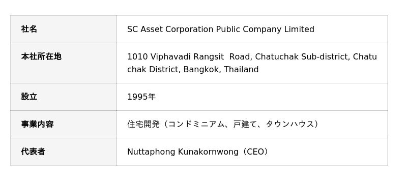 なお、本事業は、タイの大手デベロッパーであるSC Asset Corporation Public Company Limited(本社:タイ王国バンコク都、以下「SC社」)と共同事業であり、SC社との共同事業は7件目となります。
