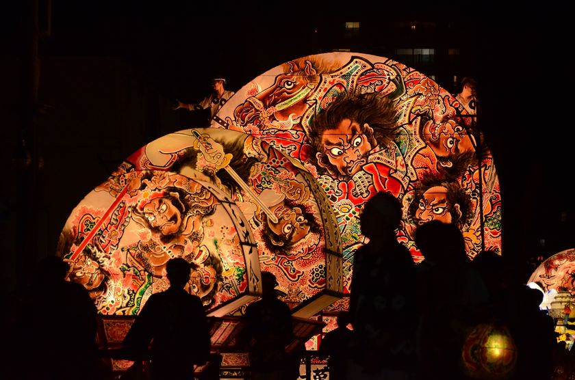 三国志や水滸伝などの武者絵を題材とした勇壮華麗なねぷたが、城下町弘前を練り歩く夏まつりです。
