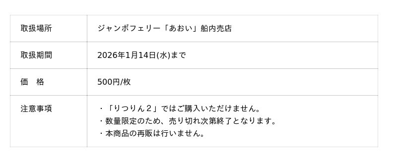 神戸~小豆島~高松を結ぶフェリーを運航するジャンボフェリー株式会社(本社:神戸市中央区、代表:山神正義)は、瀬戸内国際芸術祭2025の閉幕にともない、2026年1月14日をもちまして、「あおい」船上に展示されている『SHIP’S CAT (Boarding)』の展示を終了いたします。