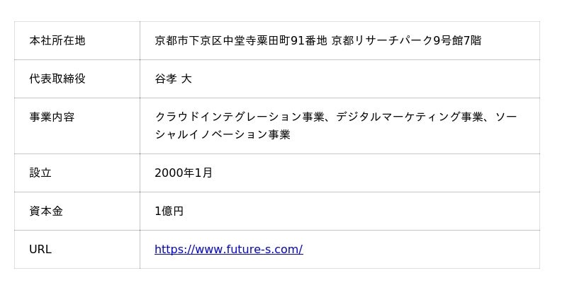 TEL:075-326-3700 / FAX:075-326-7400 / E-MAIL: pr@future-s.com