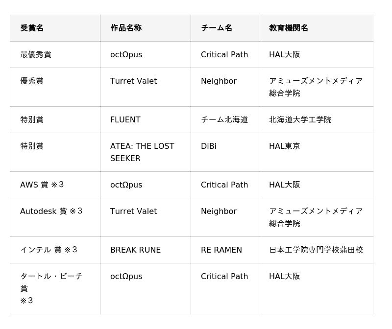 半年にわたる挑戦の末、情熱と創意工夫を注ぎ込んだ素晴らしい作品が集まり、ゲーム業界の未来を担う若き才能たちの可能性を強く感じる大会となりました。今回の経験を通じて、仲間とともに試行錯誤を重ねる中で培ったチームワークやプロ意識が、皆さまの将来における大きな糧となることを心より願っております。