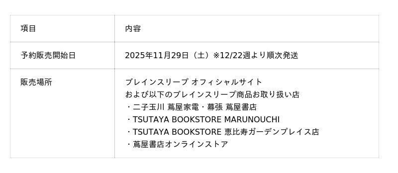 ブレインスリープ オフィシャルサイトにて予約受付中