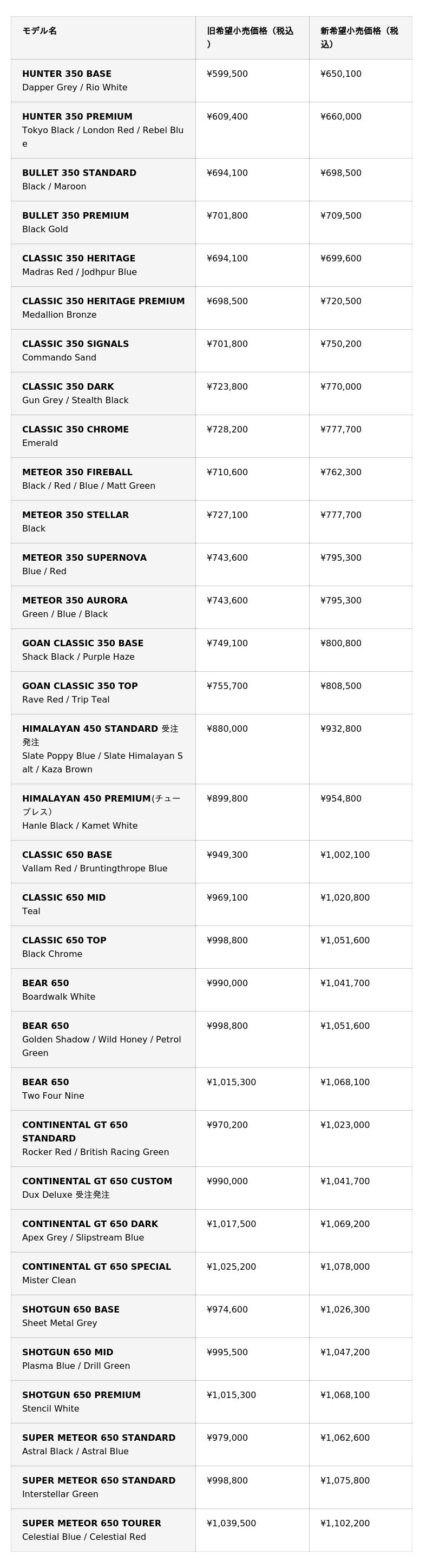 ロイヤルエンフィールドの日本正規代理店「ロイヤルエンフィールドジャパン(総輸入発売元:ピーシーアイ株式会社 代表取締役社長 高橋 一穂)」は、ロイヤルエンフィールドのメーカー希望小売価格を2026年1月1日より変更いたします。