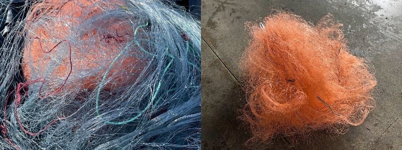 1,漁網自体に様々な素材(ポリエステル/ポリエチレンetc...)が存在し、分別が極めて困難である点