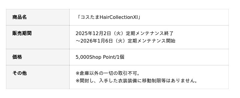 【ラグナロクオンライン】「コスたまHairCollectionXI【ラグナロクオンライン】「コスたまHairCollectionXI