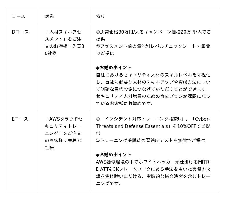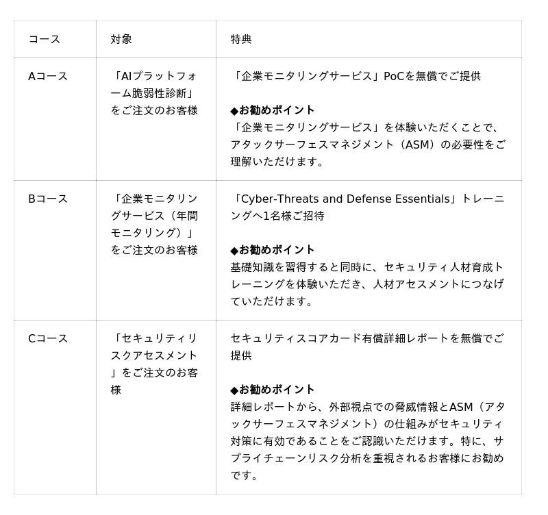 PoC無償提供や特別割引など、専門別5コースで企業のセキュリティリテラシー向上を支援