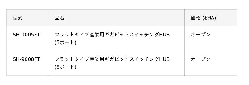 新製品のお知らせ - フラットなデザインと直流電源入力2重化に対応した産業用スイッチングHUB「SH-9005FT」「SH-9008FT」を新発売
