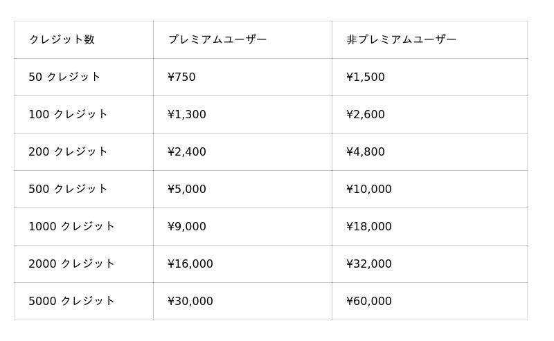 最後のフレームを指定した場合:25 クレジット / 5 秒 50 クレジット/10秒