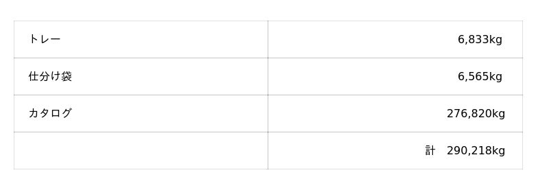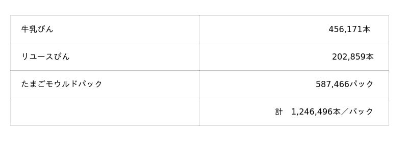 l 再使用・回収された容器・資材の総量:約1,246,000本・パック、約290トン