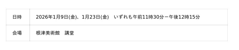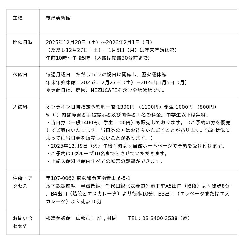 <イベント情報」>の各申込フォームから参加をお申込みください。受付開始は2025年12月9日(火)午後1時です。参加は無料ですが、美術館入館料が必要です。