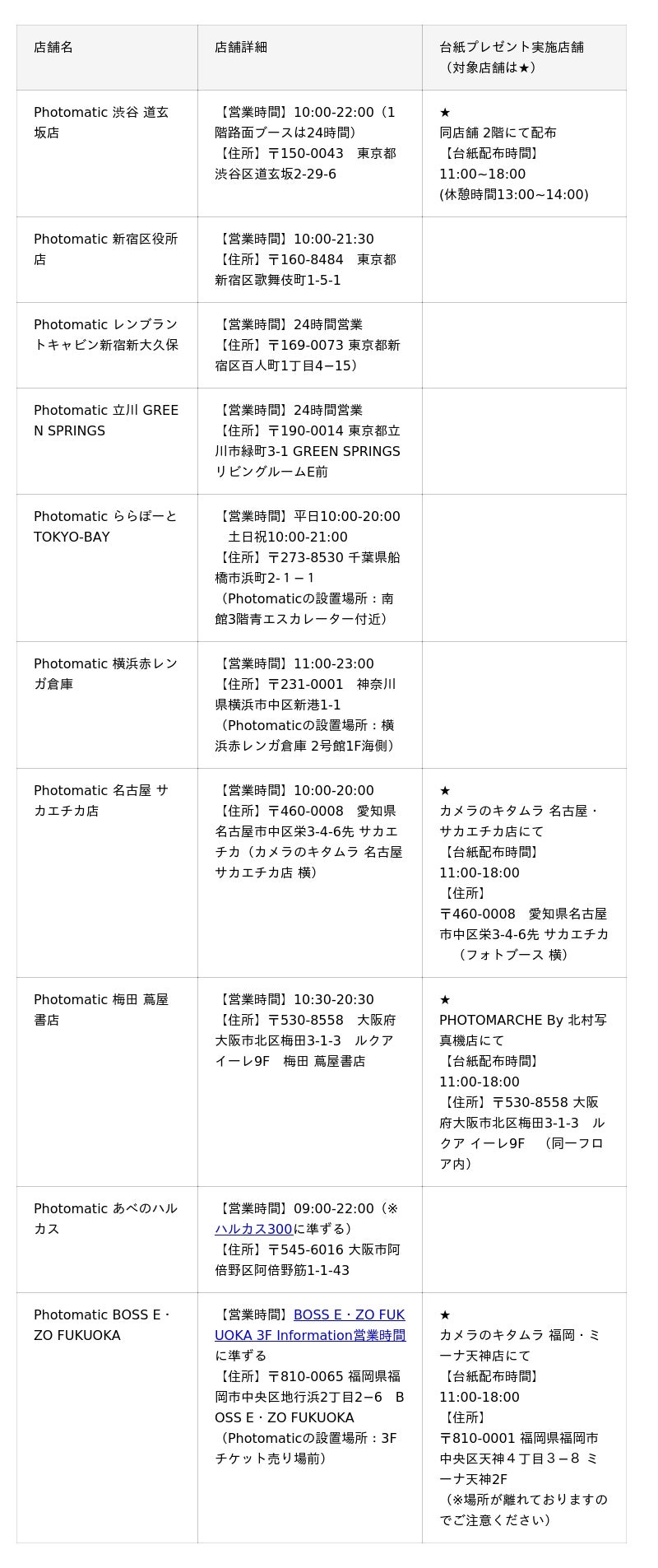 ※フォトブースの所在地と台紙引き換え店舗が異なる場合がございますので、ご確認の上ご来店ください。
