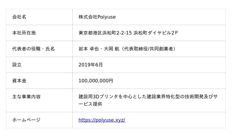 建設用3Dプリンタを開発する「Polyuse」に出資(ニュースレター)