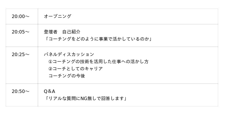 コーチングを“副業や本業”としてだけでなく、“ビジネスキャリアを底上げするスキルセット”として捉え直すオンライン企画です。