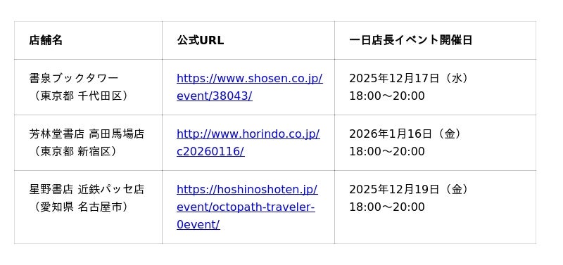 日本出版販売株式会社(代表取締役社長:富樫 建、略称:日販)は、株式会社スクウェア・エニックス(代表取締役社長:桐生 隆司)が手掛けるロールプレイングゲーム(以下RPG)『オクトパストラベラー0』の発売を記念して、2025年12月11日(木)より全国91書店にて、書店コラボキャンペーンを実施します。