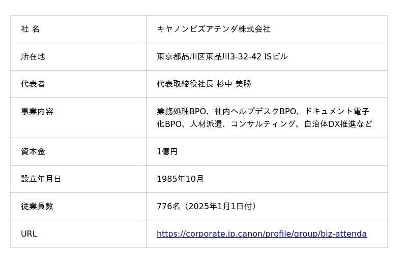・キヤノンビズアテンダ株式会社 BPOサービス第一本部 サービス推進部 03-6701-3624(直通)