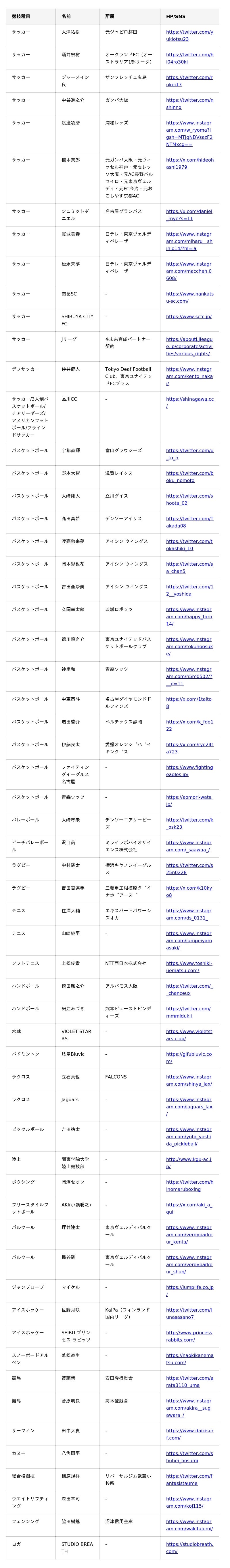 <BASE UP SPORTS サプライヤー契約一覧(現時点)>