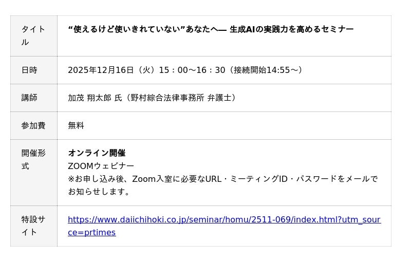 【12月16日開催|無料セミナー】“使えるけど使いきれていない”あなたへ― 生成AIの実践力を高めるセミナー