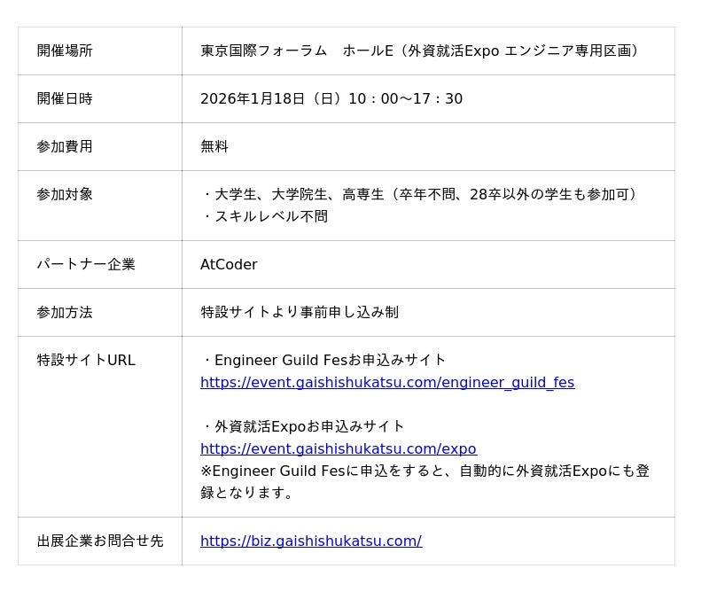 外資就活ドットコム、AtCoderと共同でエンジニアの未来をつくる文化祭「Engineer Guild Fes」を2026年1月18日に初開催