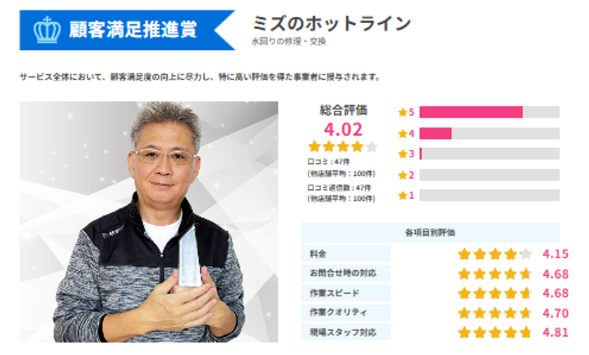 利用者からの高い口コミ評価と、アフターフォローの丁寧さが高く評価されました。