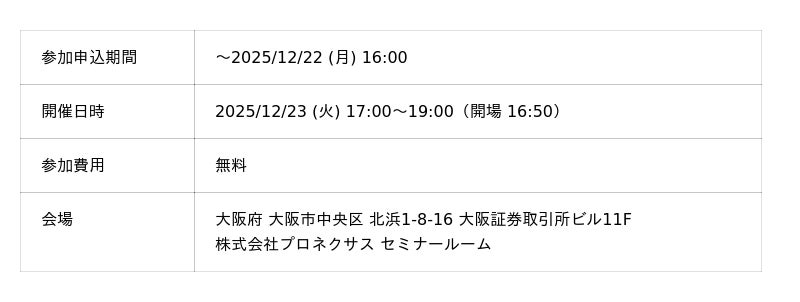 ~2025年12月23日(火)17:00~|大阪証券取引所ビル11Fにて無料開催~