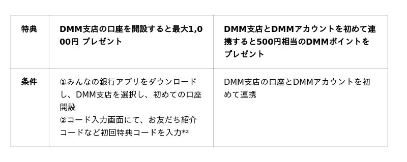※新規口座開設者限定特典はみんなの銀行で初めて口座を開設される方が対象です。口座解約後、改めてDMM支店を開設された場合、新規口座開設特典の適用はございません。