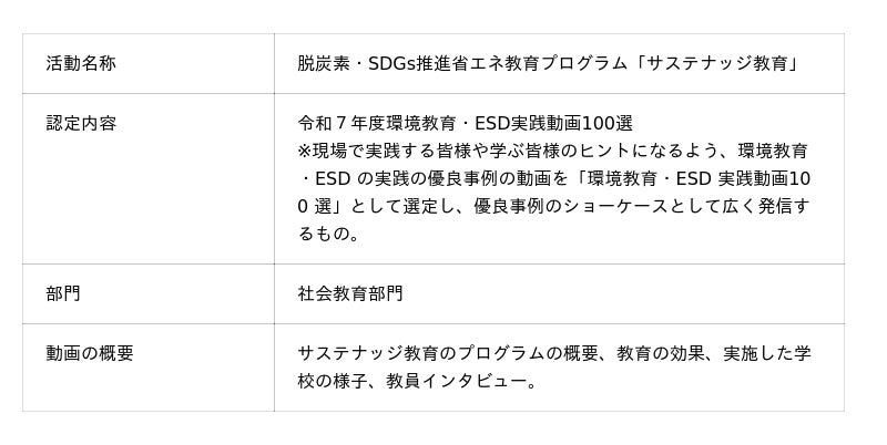 「サステナッジ教育」の動画が環境省 令和7年度「環境教育・ESD実践動画100選」に選ばれました!