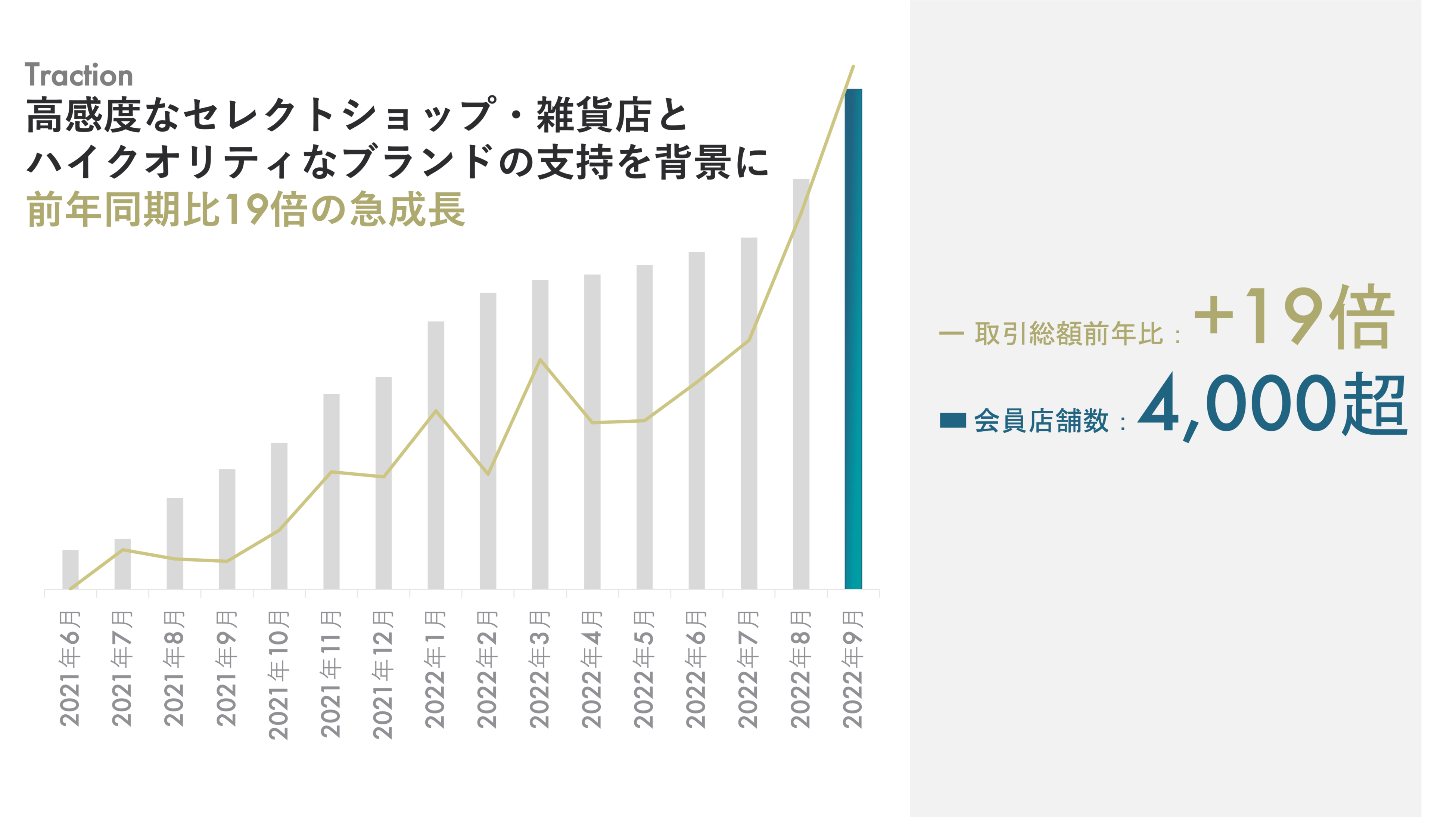 それに伴い、アパレル・雑貨業界内での認知度向上・高いGMV成長率を実現してきており、アパレル・雑貨業界の仕入プロセスにおいて、なくてはならないサービスになるということを確信しております。
