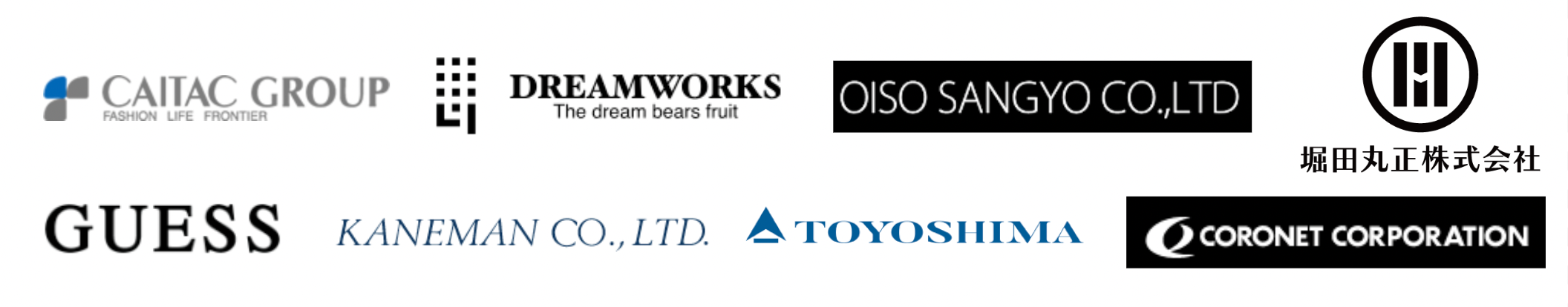 企業:--GUESS、カイタックグループ、コロネット、大磯産業、豊島、株式会社ドリーム、KANEMMAN、堀田丸正--