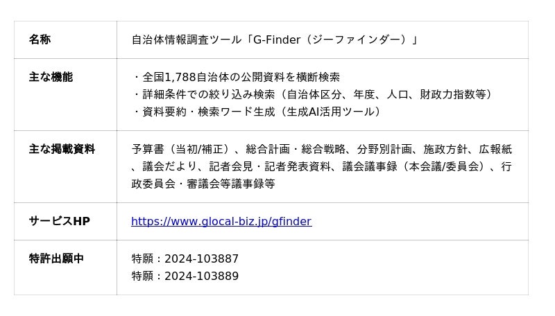 グローカル株式会社(本社:東京都港区、代表取締役社長:板倉 譲治)が提供する、全国1,788自治体の公開資料を横断検索できる自治体情報調査ツール「G-Finder(ジーファインダー)」はこの度、導入企業社数が100社を突破したことをお知らせします。