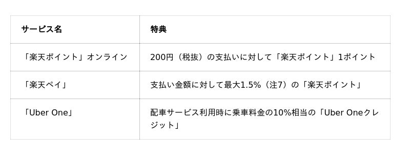 (注5)「Uber Eats」では商品代金、「Uber」では乗車料金が「楽天ポイント」進呈の対象となります。