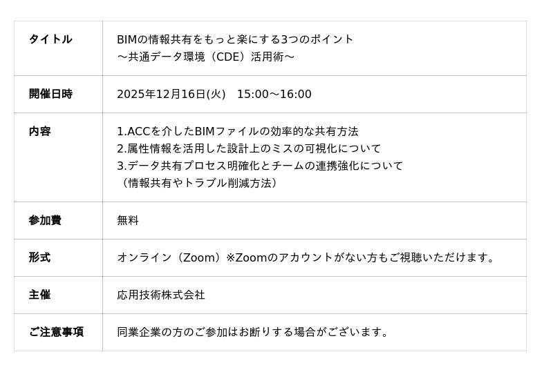 BIMの情報共有をもっと楽にする3つのポイント~共通データ環境(CDE)活用術~」を開催します。