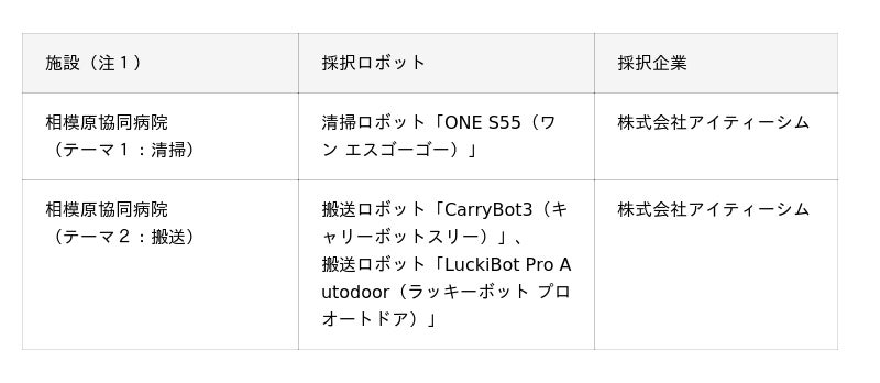 このたび、県が選定した施設において、施設が抱える様々な課題を解決するロボットを募集し、外部審査員による審査の結果、2件を採択しましたのでお知らせします。
