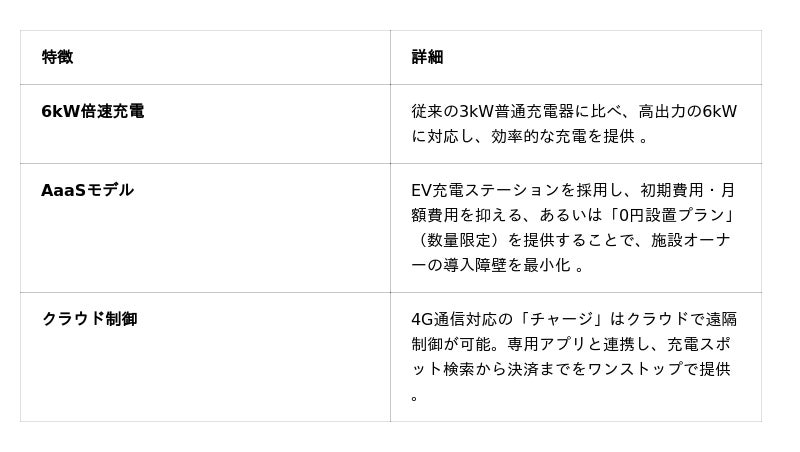 VELETが普及を推進する「EV充電エネチェンジ」は、以下の特長によりインフラ導入の障壁を大幅に引き下げています。