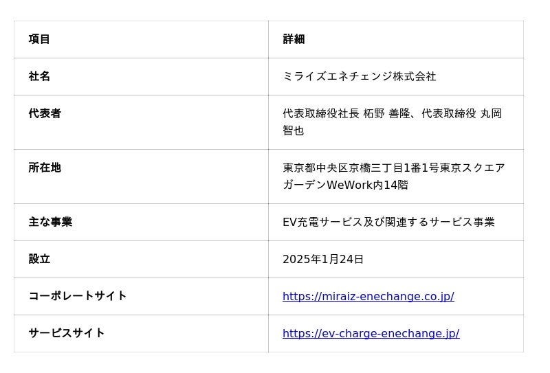 「EV充電エネチェンジ」は、中部電力ミライズ株式会社とENECHANGE株式会社の合弁会社であるミライズエネチェンジ株式会社が運営するEV充電インフラサービスです 。
