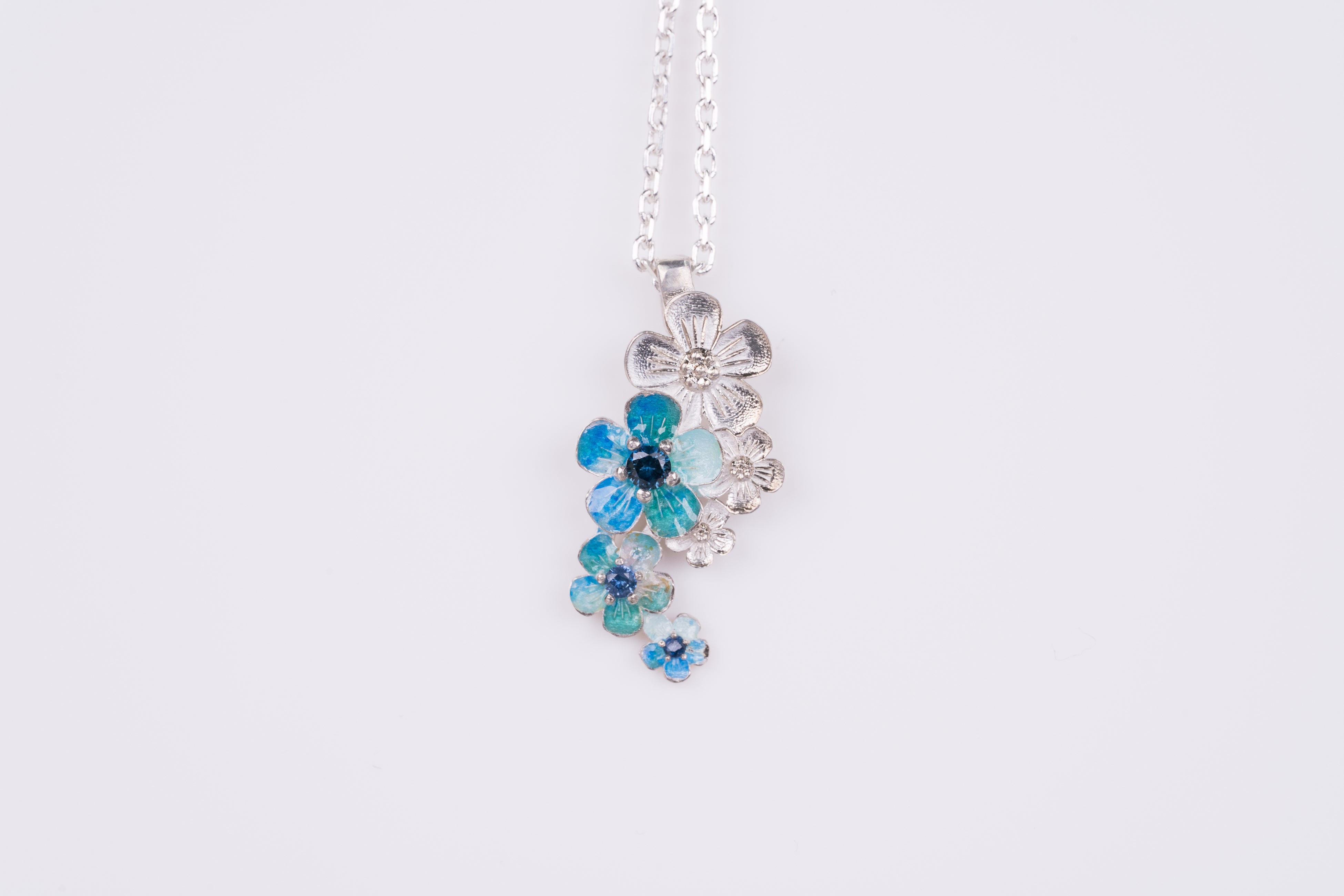 また、エマーユピアスとエマーユネックレスでは、サファイヤの石留めを行っております。